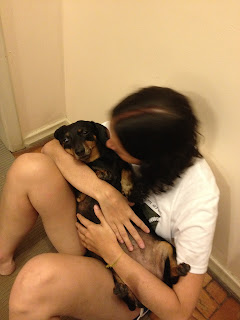 Chegamos em casa, barulho de chave na fechadura e pronto, sinal mais que suficiente para Filó correr para ver quem chega, como sempre faz. Mas, ao dar de cara com a Dê, levou um baita susto! Não latiu, não uivou, simplesmente estatelou! Por uns bons segundos, não reagiu. Mas, depois: muuuitos beijos, lambidas, ganidos!!!E assim foram todos os dias, agarrada com ela, beijos e abraços recíprocos. O típico grito "Filóóóó! Dormir agarradinha, seguir passo a passo, ver tv coladinha com ela no sofá, passeios por Copacabana, todos os detalhes nesses 10 dias foram muito felizes.